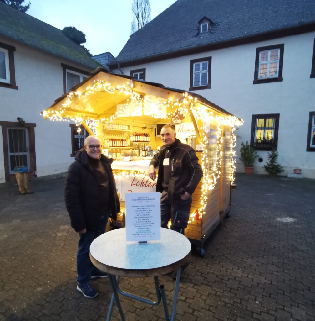 Auch die Getränkestände waren sehr gut besucht. Großen Zuspruch fanden der heiße Apfelwein von Thorsten Puff, die Dauborner Schnaps-Spezialitäten der Brennerei Heimann sowie der Glühwein vom Winzer aus Erbach, der gemeinsam mit weiteren alkoholischen und nicht-alkoholischen Getränken am Stand der Hünstetter Liste ausgeschenkt wurde. Für die kulinarische Stärkung sorgten Mettenden, Bratwürste und frisch zubereitete Crêpes, die von den Besucherinnen und Besuchern gerne genutzt wurden.